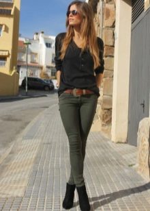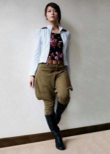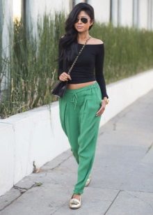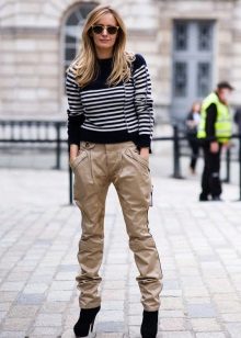 These pants should be combined with tops, shirts, blouses or sweatshirts. They harmoniously look in a tandem with short tunics, long sweaters, and also fitted-fit jackets.
