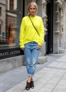 - All-out casual - free direction, which is different carelessness. With wide jeans, you can wear a long sweater of any color.
