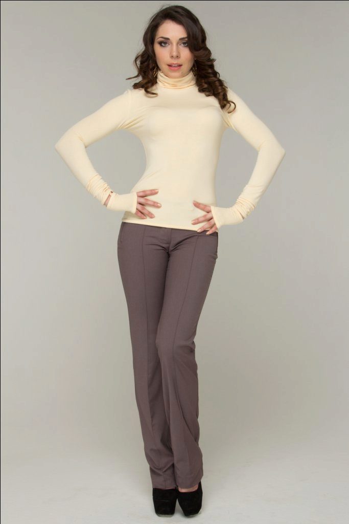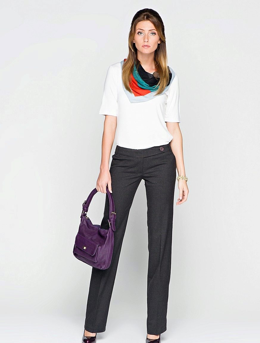 Depending on the cut of straight trousers, they can suit both full ladies and slim girls. For example, straight pants, which are narrow and tight upper legs, are more suitable for slender girls, because owners of curvy shapes risk over-emphasizing the flaws of the figure with this model.