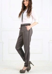 If you combine classic trousers with stripes with a jacket or jacket to match the color of the side stripes, then the business office style will be quite appropriate. Even a flirty scarf will not be superfluous. But in order not to distort the image, do not forget to make sure that there are no unnecessary unaesthetic folds on your trousers.
