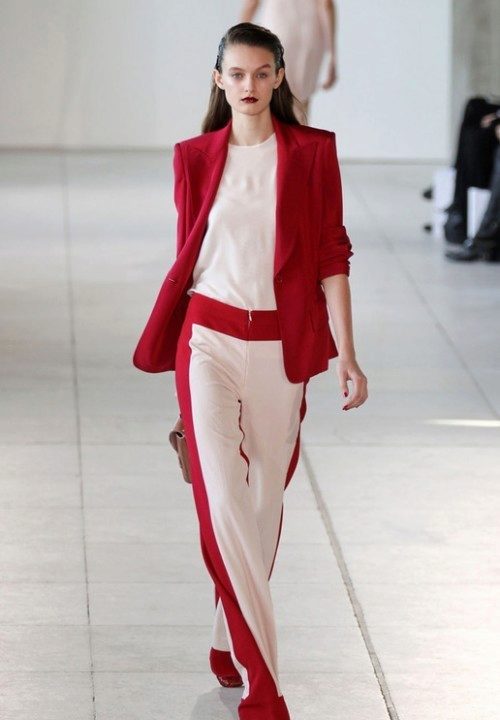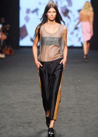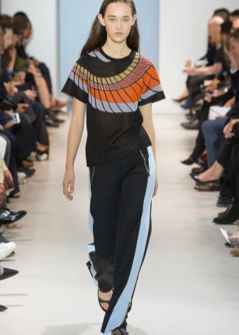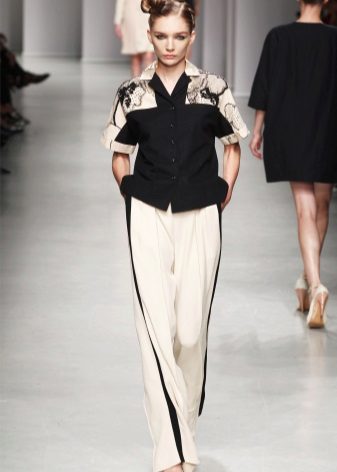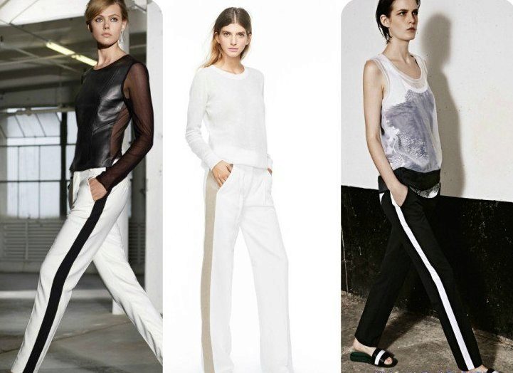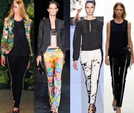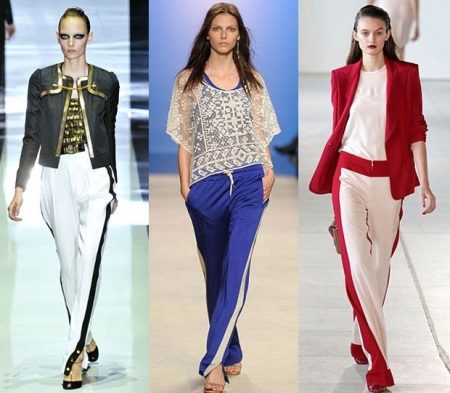 The most familiar style of trousers with stripes is training pants. But today, pants with a sideband are easily involved in creating feminine and elegant images; in the collections of designers, you can even find classic pants decorated with a side insert or tucks.