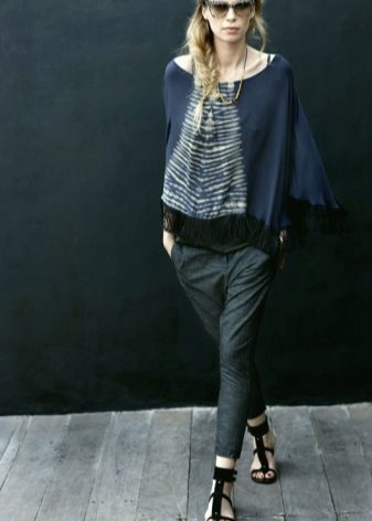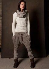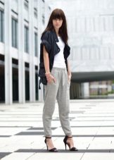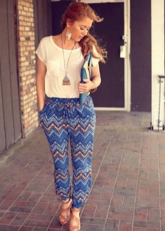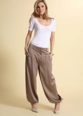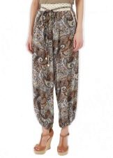 Trousers are a very wide pants made of soft fabric. On the belt, they are usually assembled with an elastic band, and the lower part of the pants is very narrowed - most often with the help of an elastic band. In this case, trouser legs can be divided significantly lower than on classic trousers
