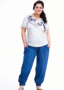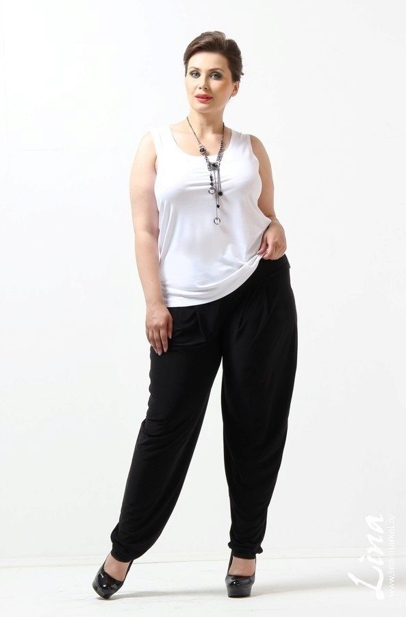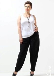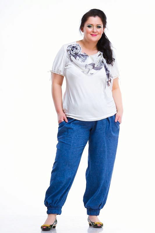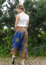 With the help of trousers, trousers can hide imperfect legs or hide the protruding tummy (if you choose a model with a wide elastic band). Ladies with luxurious forms look in these pants real oriental princesses.