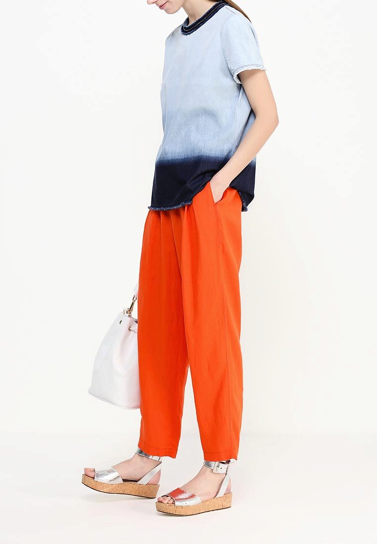 Pants by Armani Jeans: another model from natural flax, this time a bright orange color, with decorative tucks on the hips.