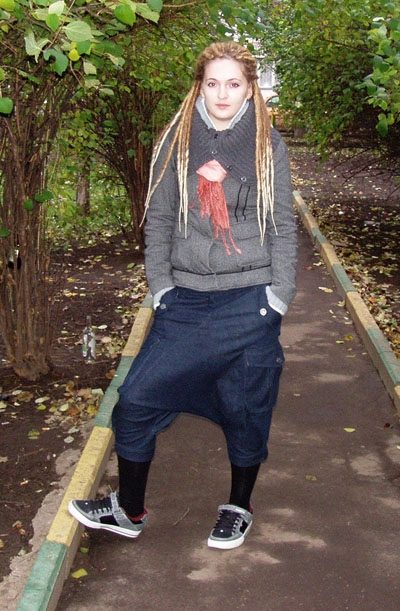 Now popular models of trousers, in which the line of the seat (it is usually called the coarse word "motny") begins below the knees or even at the level of the ankles.