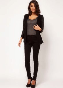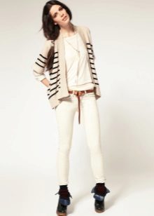 Skinny pants are a universal thing, which perfectly combines any fashion trends. For example, here is a coat, which is now at the height of fashion.