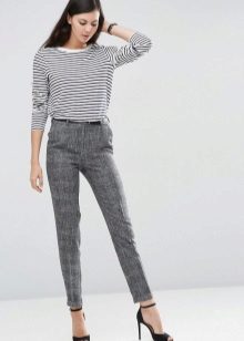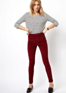 It is regrettable to note this, but skinny pants are suitable for girls with an exceptional figure - perfect hips, slim and straight legs, elegant calves. Best of all, pants of this style look tall women. For owners of a more modest growth, only strong thinness will become the green light for wearing skin. Just slim and low girls can wear such pants with heels, but only if the calf is not too pumped up.
