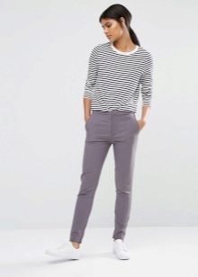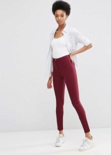 You can create a casual, informal look from skinny pants, stylish T-shirts or tops, turtlenecks, sweatshirts. Sneakers, sneakers or thick-soled sandals will complement this look.