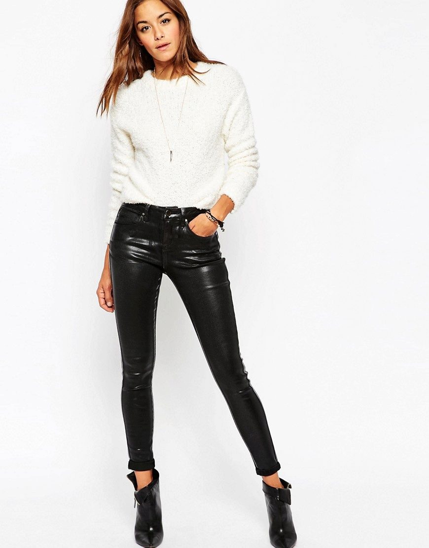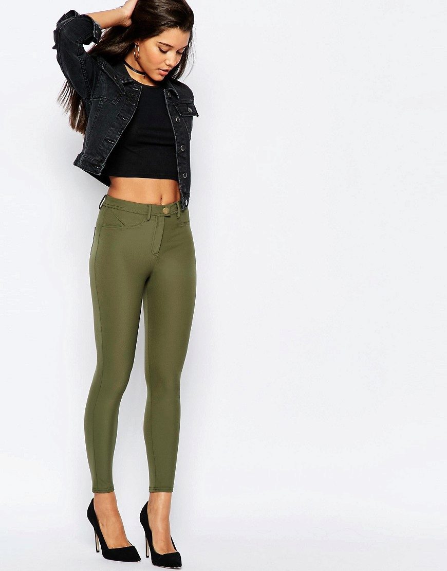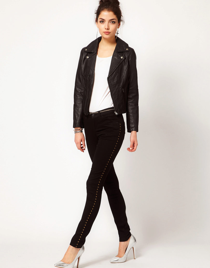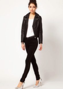 - The first one is the material. It can be blended fabrics that combine natural and synthetic material. Such fabrics are used for sewing skinny in order to increase their service life, improve practicality. For several years in a row, the most popular material for sewing skinny has been denim in many different variations. Thinner or less stretch, for skin it is always taken elastic and elastic. Although there are also quite tough models, they have lightnings on the bottom of their legs to make them easier to wear.