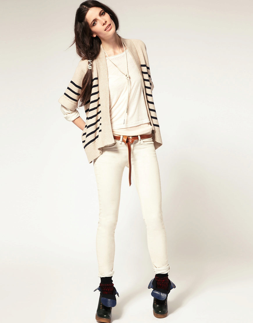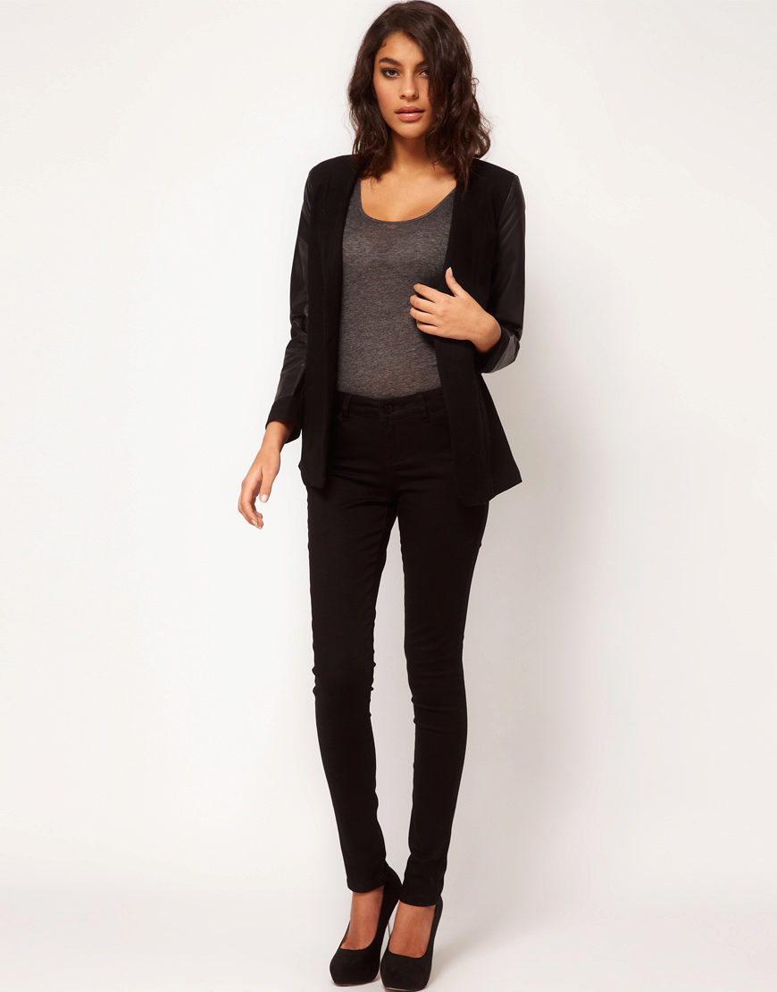 Since the most popular material for skinny is denim, then the most popular color scheme follows from here - all shades of denim. White and black are also relevant, it is dictated by the universal burden of minimalism and simplification of style, not only in clothes, but also in the interior, in art.
