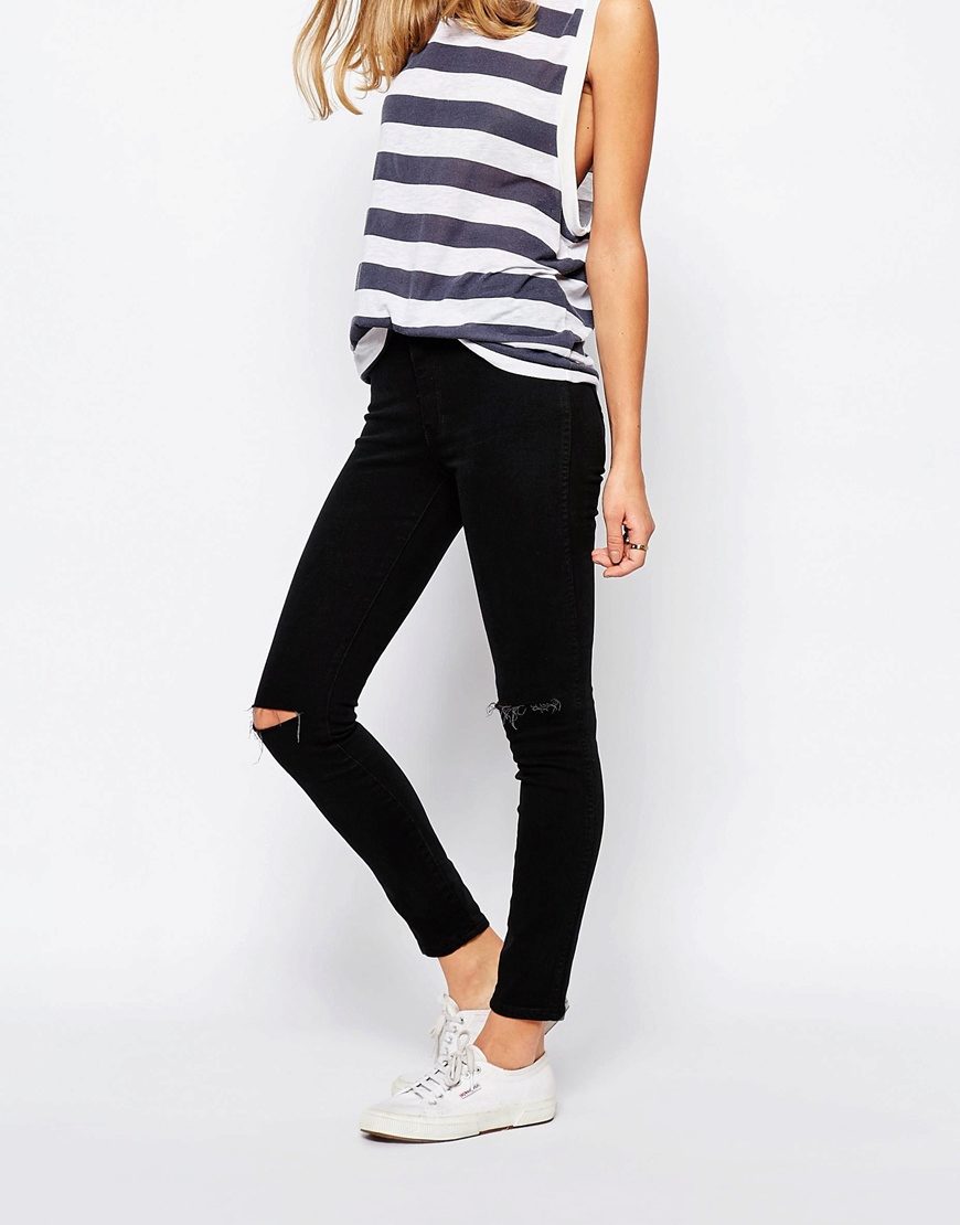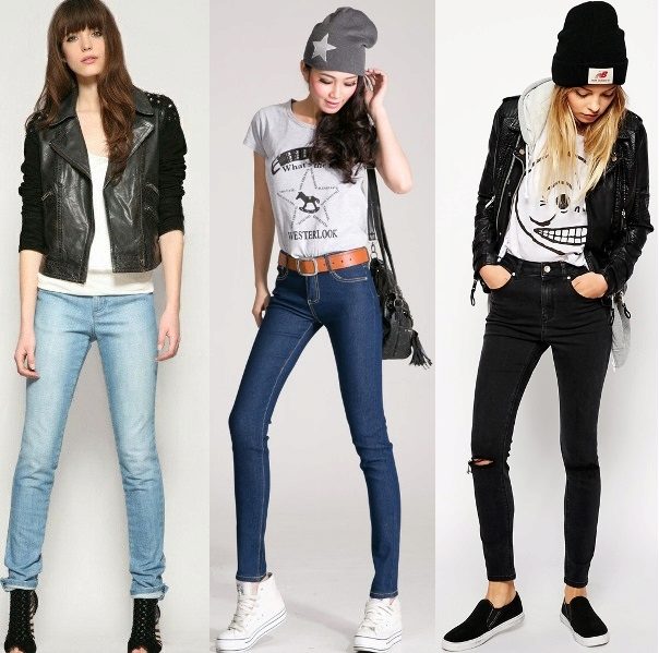Only in the presence of all the listed conditions you can safely wear jeans or skinny style pants. But modern fashion has so popularized this type of pants that girls with big shapes still tend to get such pants and wear them, combining with a long top. Let's face it: this is not an option. Today it is fashionable to wear skinny so that the pants are fully visible, that is, their top should be open.