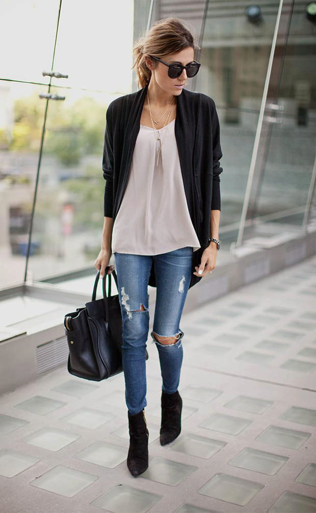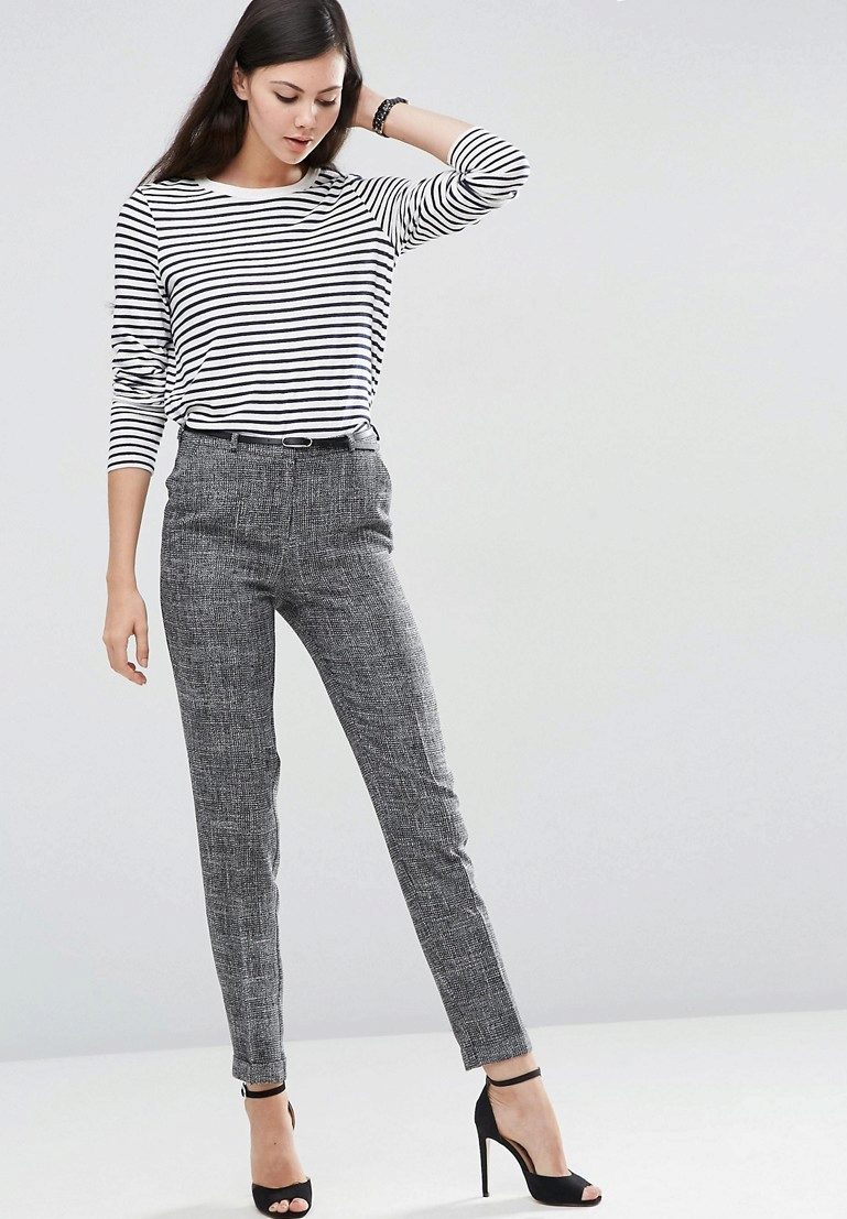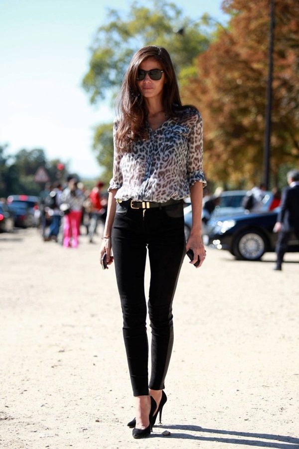 Whatever ensemble you decide to make with skinny pants, always choose the top of a short cut. With oversized models, a tucked top, such as a shirt or top, is allowed.