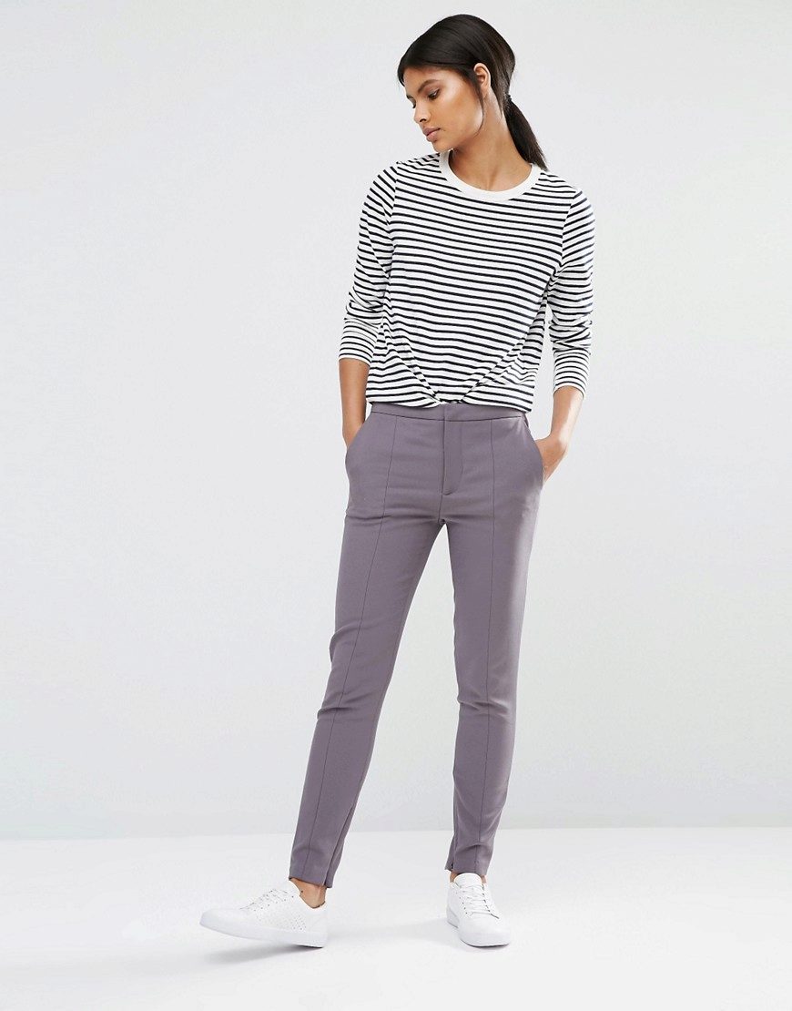 50 shades of grey. This color is one of the sharpest trends today. He can be very different, very exciting. Smoky, stone, monsoon, coal, slate, silver - try to get skinny pants made in any of these shades, and you will get one hundred percent hit of this and even the next few seasons!