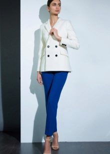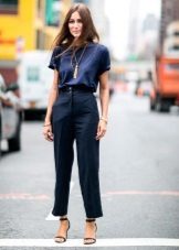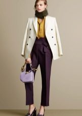 Trousers with arrows can be combined with T-shirts, tops, T-shirts and turtlenecks - in the women's version, and in the men's - the same T-shirts, cardigans, turtlenecks are quite suitable. In addition, elegant blazers, jackets, blazers and vests look perfect with trousers with arrows.