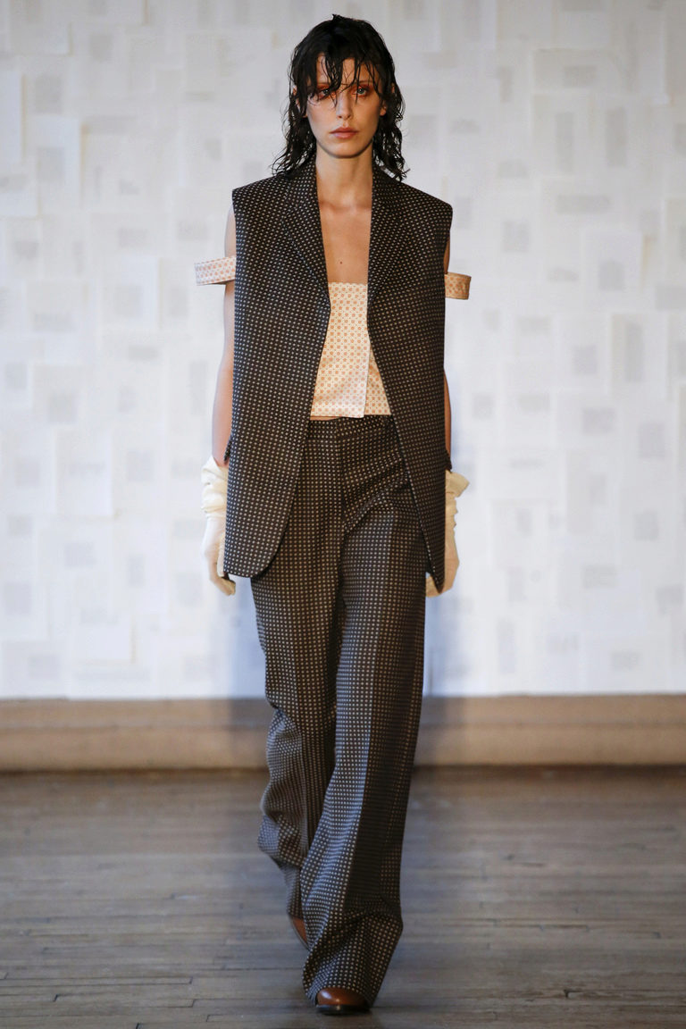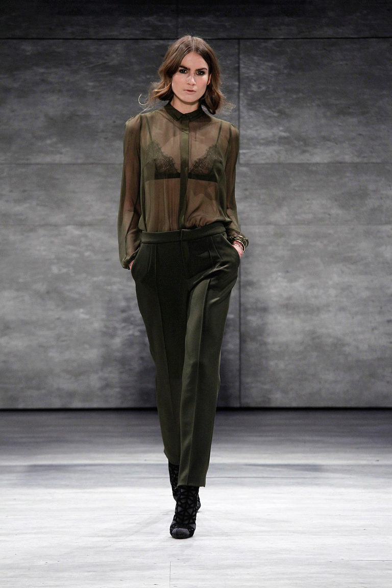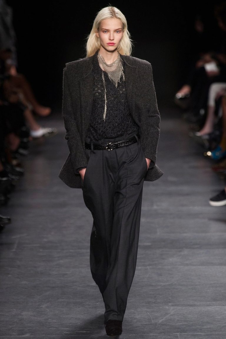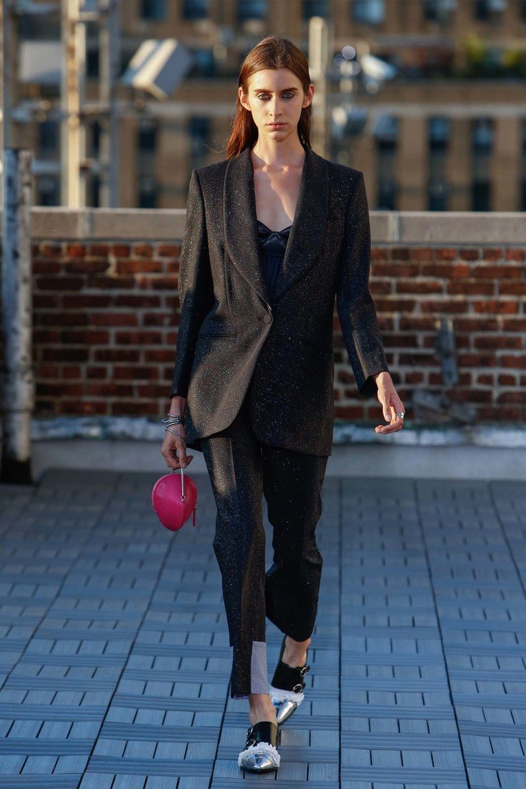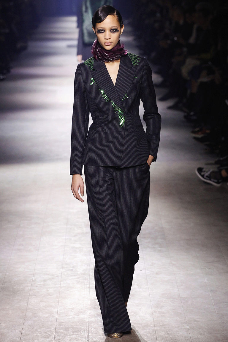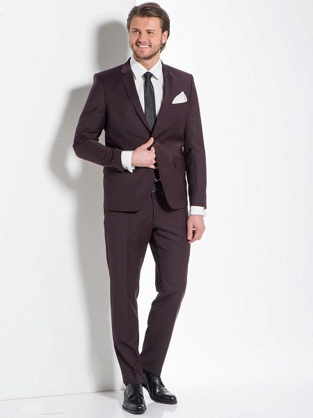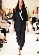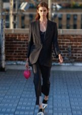 The ideal option would be a two-piece suit in black, consisting of classic trousers with straight cut and a single-breasted fitted and slightly elongated jacket.