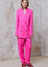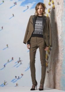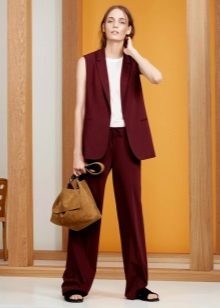 A two-piece suit made of classic straight-leg trousers with arrows and a dark-brown double-breasted jacket will be a very stylish and unusual option.