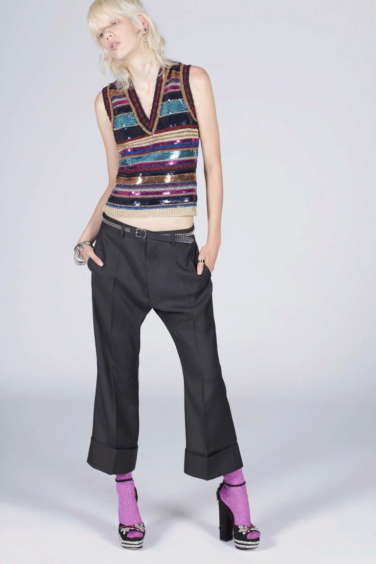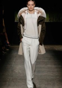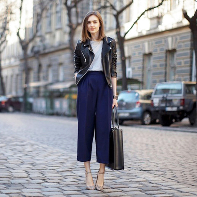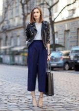 The pants themselves are an ornament and do not require additional accessories, but various beautiful belts with decorative buckles, interesting bags, gloves or glasses will help to dilute the image.
