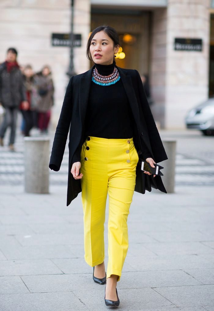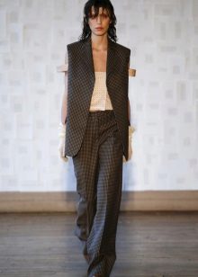 Trousers with arrows of female models are several types. For example, wide pants, free cut, will be an element of casual style rather than business, because too loose clothing does not give the impression of seriousness and formality.