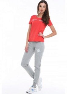 The pants sports style your own kind of decorative elements. Often there are rhinestones and embroidery, with the help of which they create inscriptions on the buttocks, pockets, thighs, along the shin. It is also about accessories, which is used on pockets, belts. One of the most common ways to decorate the form are stripes - color contrasting stripes on the legs.