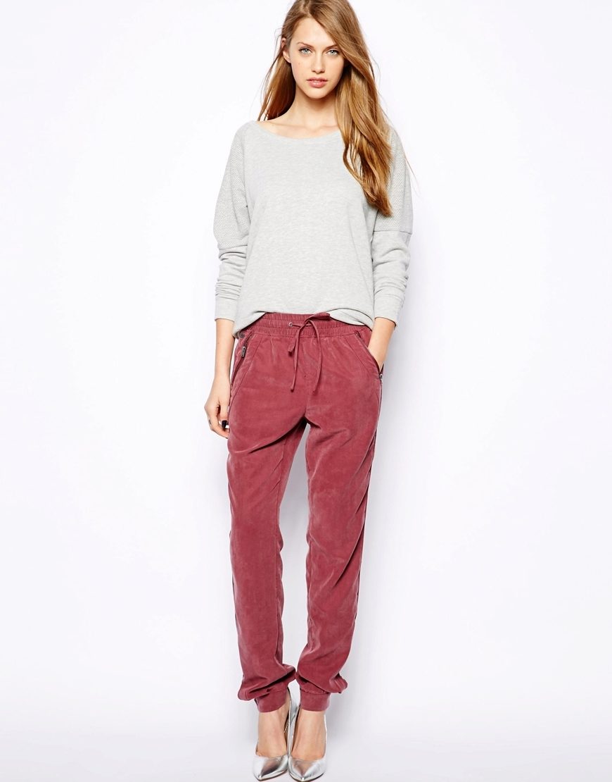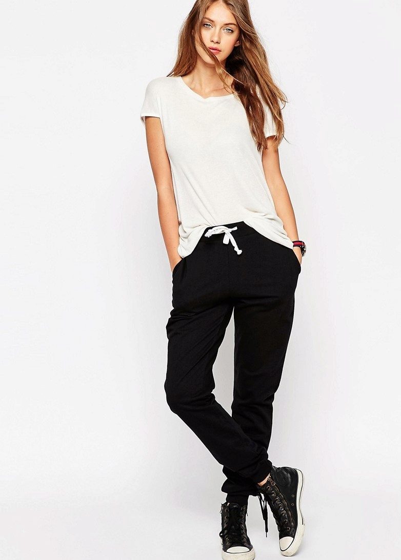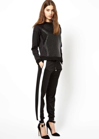 In recent years, it has become fashionable to combine different styles in clothing. Therefore, with the help of sports pants, you can create not only a sports image, but also casual and even evening.