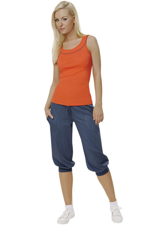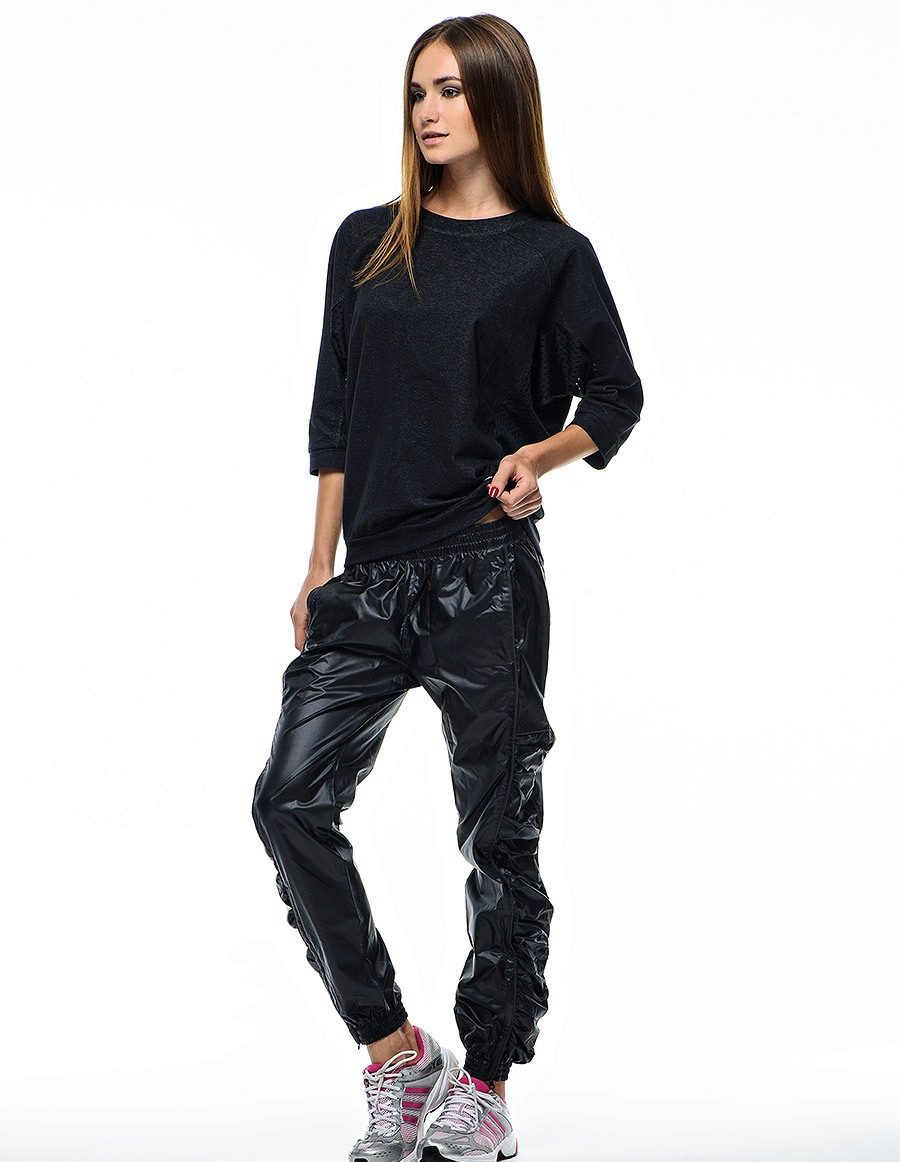For sports pants there are several types of actual length. The very first, of course, the standard length to the ankle. Fashion shortened office pants came in a sporty style, so it is not difficult to find trousers with a length of ¾ (ankle several centimeters high) and 7/8 (ending at about the middle of the calf). Most models with elastic on the edge of a standard length or length.