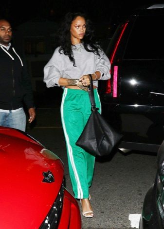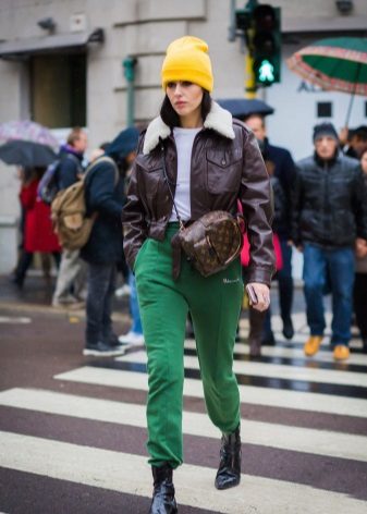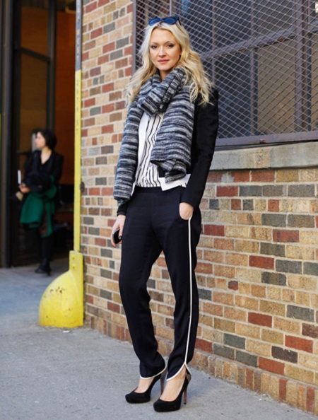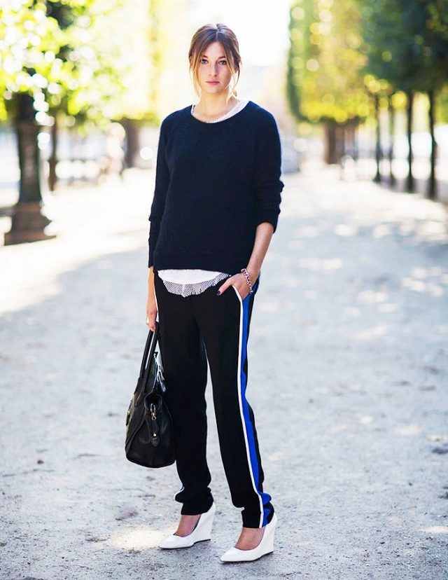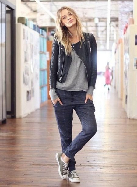 Certain models of sports pants can be combined with classic things, such as a white shirt. Knit sweaters, knitted cardigans and sweaters are also suitable.