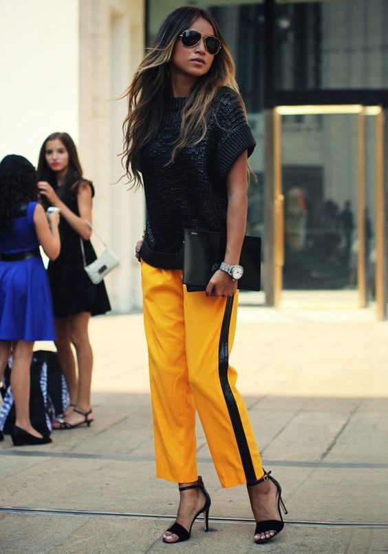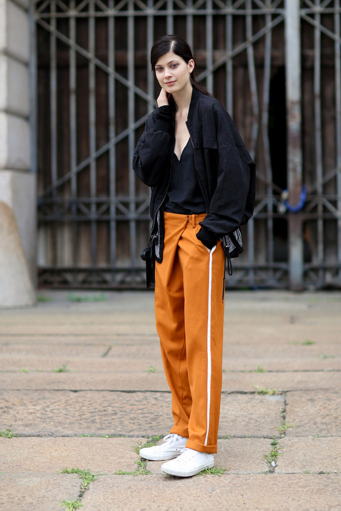 Stylists advise this season to combine elements from different styles, for example, sports pants with the attributes of the classical style.