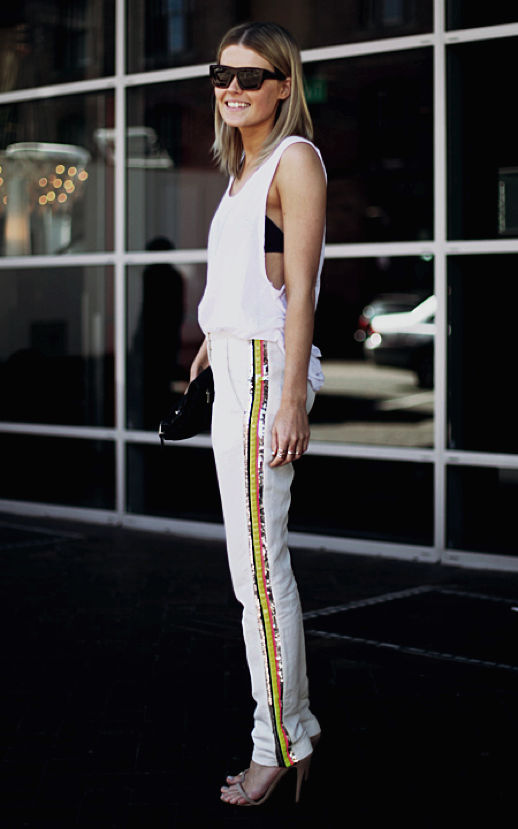 White color, although it is very stylish and relevant this season, is not quite suitable for such a thing as sports pants, because it is impractical to use for its intended purpose. But it should be noted that white sports pants, narrowed to the bottom, look very interesting.