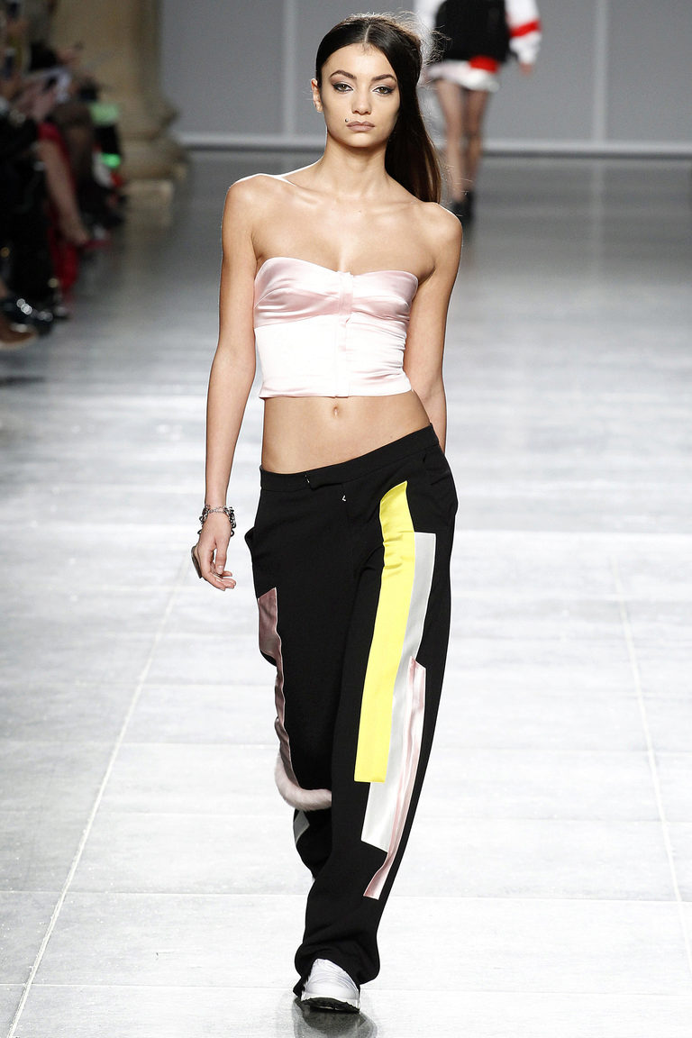 The shortened model of sports pants, as a rule, is ankle-length or 2 - 3 centimeters higher. Looks particularly stylish with high sneakers or shoes with heels.