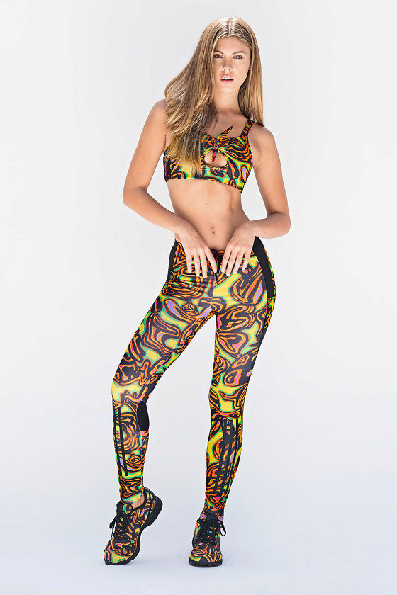 The most popular model of this summer are Power Legendary sport leggings, decorated with a print of various thin interlacing lines. The peculiarity of this model is that the pants produce a compression effect, thanks to a special fabric.