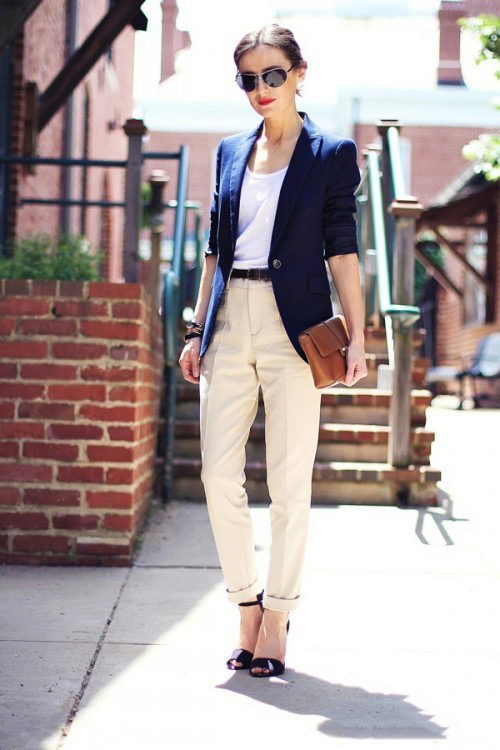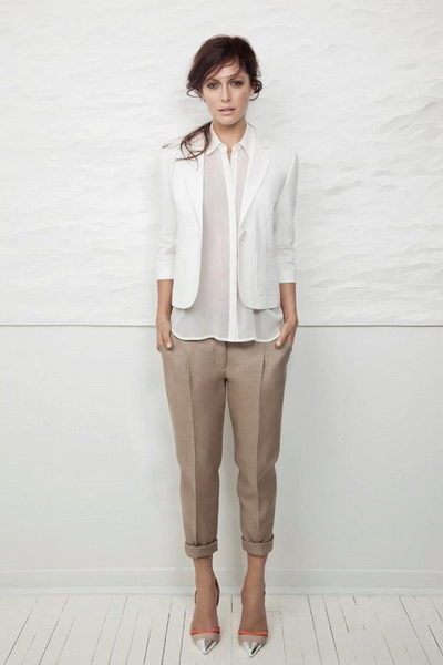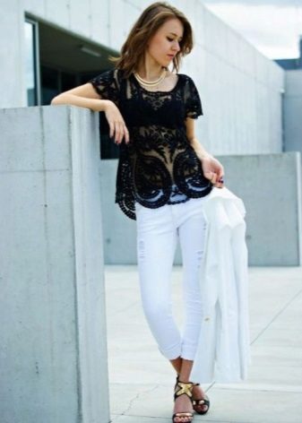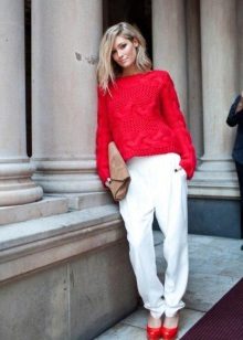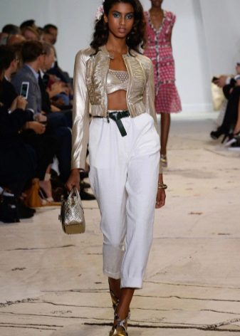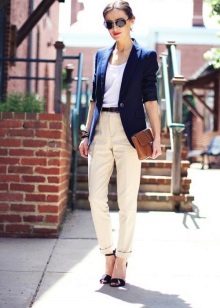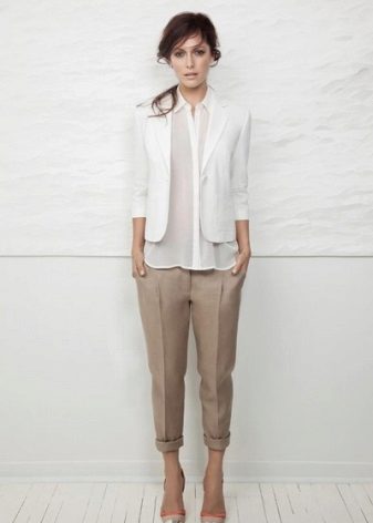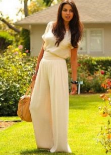Light trousers - a capricious thing in your wardrobe. Choose the top should be based on the type of your figure. An important addition can be accessories.