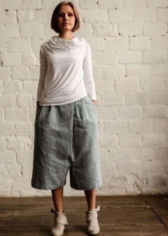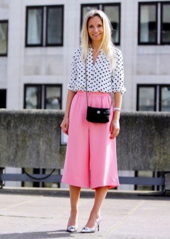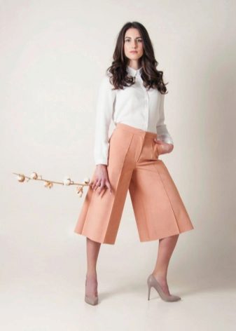 Putting on culottes, it may seem that you are not in pants, but in a skirt. Narrow on the troubles, they are wide enough to the bottom.