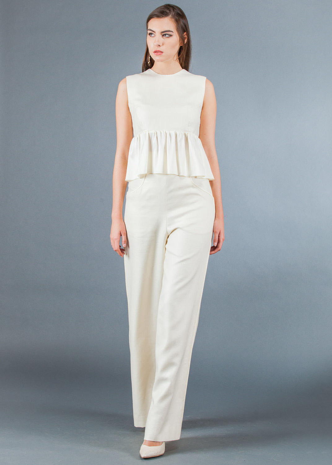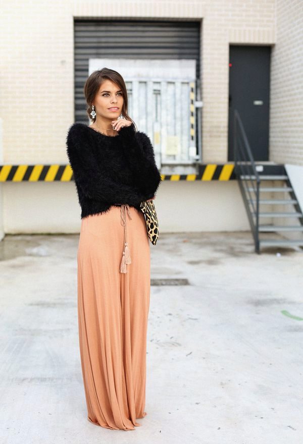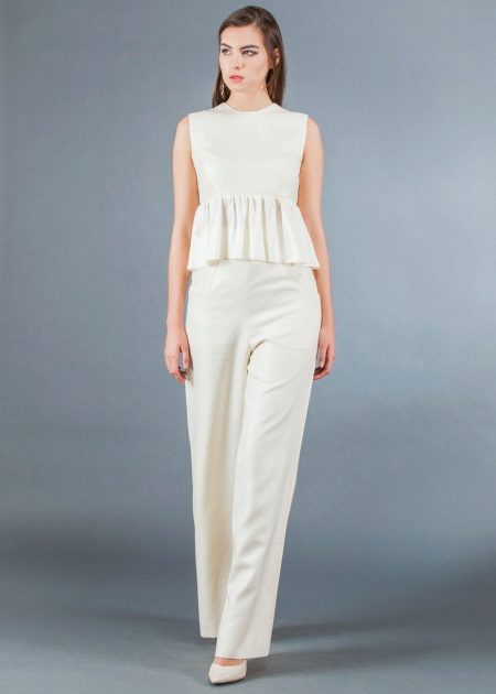 Evening bow can be formed with a top. It can be dark, shiny or the color of the pants. Classic models of trousers can be easily worn with sophisticated models of blouses or tops.