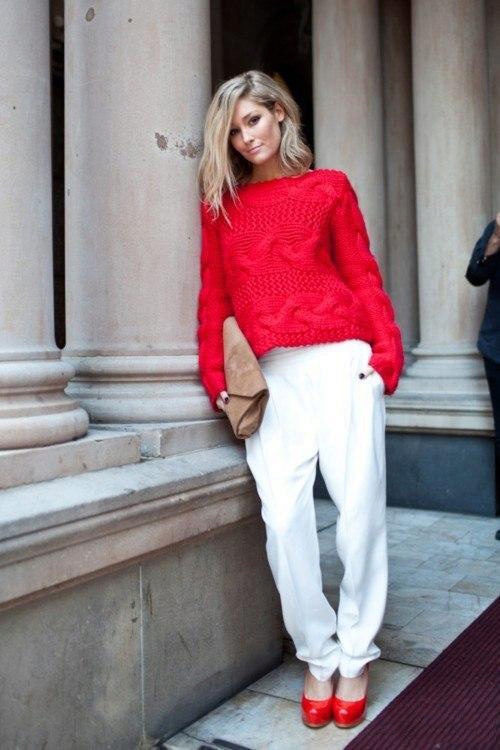 - Sweatshirts, knitted sweaters are better to choose in bright colors, for example, in the milky or white version of the shade.