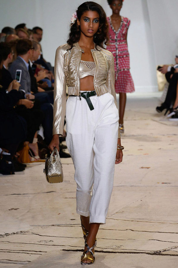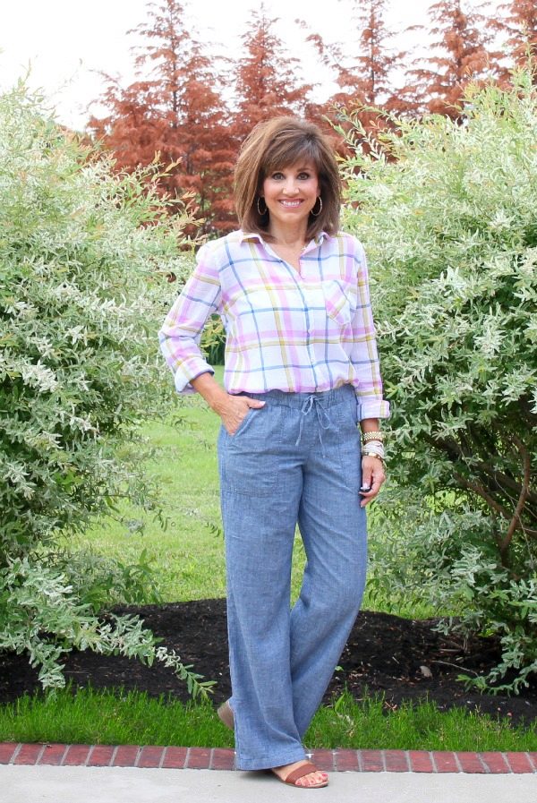 Mom’s jeans pants are relevant again. Light trousers with a high waist can be stitched pockets.
