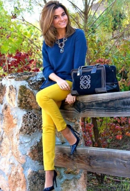 - Yellow. Bright and summer-like beautiful color should be chosen as bright girls. At the same time, it can be combined with white, and blue, and blue top.