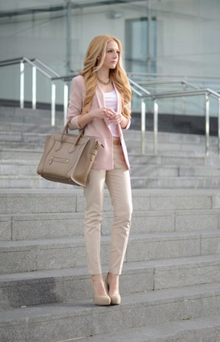 Blouses in pastel colors are good in office style. Choose them with care, such a bow can be faded. With dark blouses and shirts it is good to combine trousers of pastel shades, for example, beige or dairy. A combination of pink or yellow pants with a black top can tell about your bad taste.