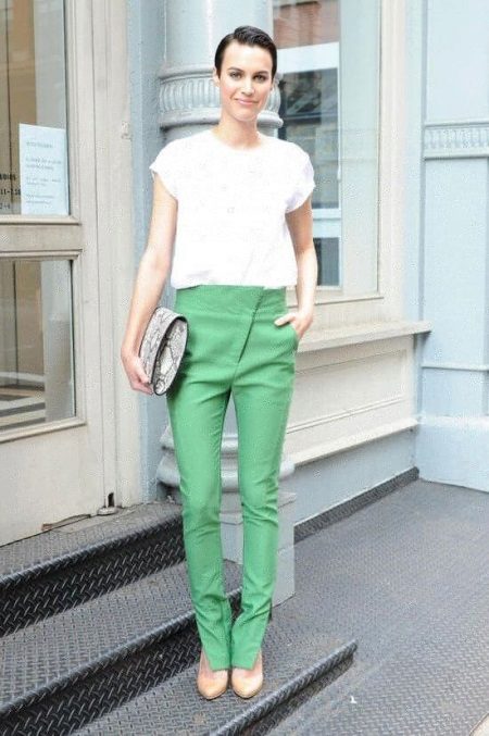 - White. This is the hit of the summer season. Without white trousers it is impossible to imagine any basic wardrobe. Combine them with a bright top or pastel palette.