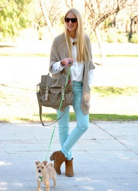 Jackets and blazers, cardigans will help create a casual look.Choose heeled shoes and bulky bags.