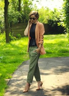 Under the jacket, you can wear a turtleneck, T-shirt, crop top, shirt, blouse. Complement the image of shoes with heels, neat sandals on a heel or a pair of classic shoes on a flat course.