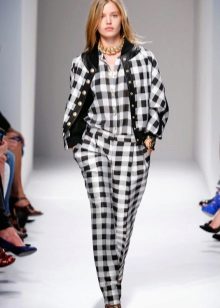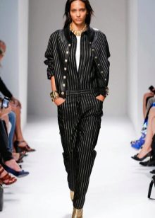 An elongated blazer, with or without sleeves, is at the peak of popularity today. It also looks great baggy oversize blazer, as if borrowed from her boyfriend. It looks very bright and unusual in combination with wide trousers, the image is calm and relaxed.