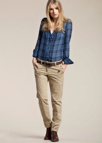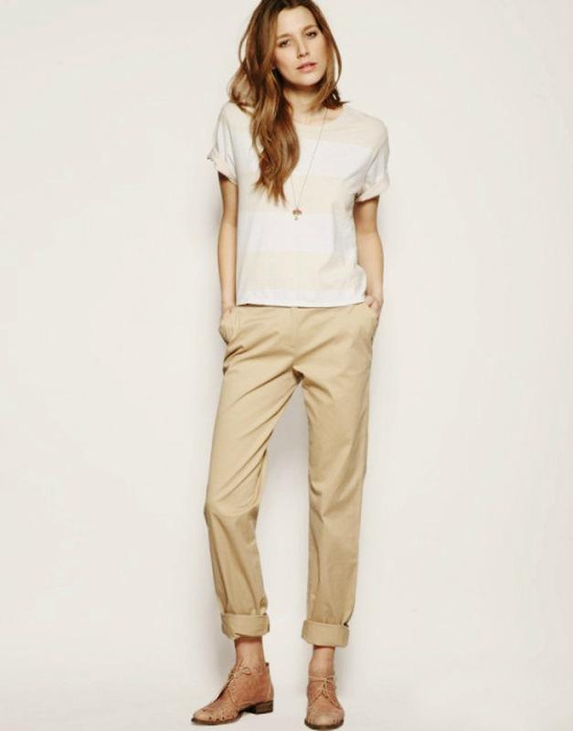 To wear them, as a rule, tucked, with almost any clothing and shoes. Chinos more stringent cut even suitable for work. Choosing pants for every day, give preference to beige, blue, olive or sand color. And if you want to add bright colors to your everyday wardrobe, choose color - pink, red or green.