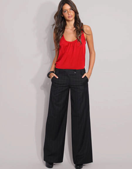 - Wear wide leg pants with a fitted top only. Often we neglect this rule, inspired by photos of models. However, for girls whose parameters are far from model ideals, a baggy top with a baggy bottom will simply disfigure the figure. In short, you want to add yourself a few extra pounds? Then this is an option for you. If not, give preference to a fitted top.