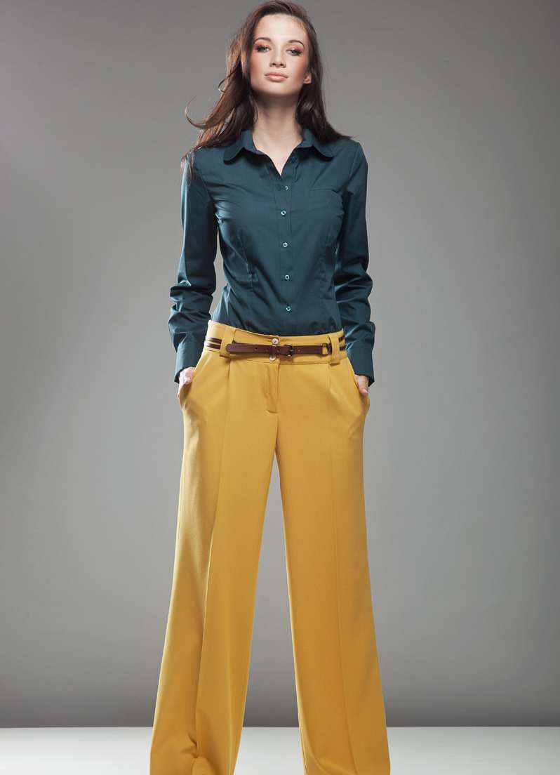 - Keep a balance - wear flowing clothes with clearly structured. Wearing airy skirt pants? Complete them with a blazer or jacket. Prefer tight chinos made of thick fabric - wear them with an air blouse or a knit sweater.
