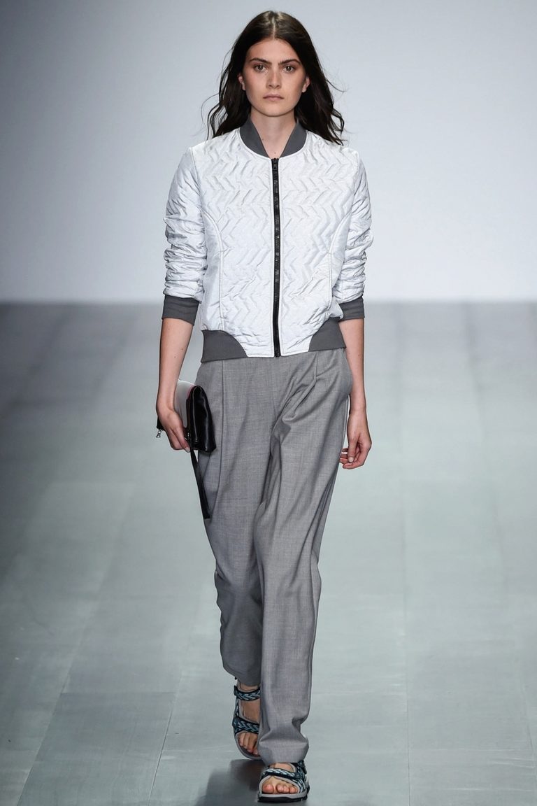 The previous version is ideal for work, and the bomber will successfully fit into a stylish casual look. Since both things look quite voluminous, wear the bomber jacket unbuttoned, and wear a tight sweater or top at the bottom. It is better to choose shoes with heels, but tall girls can experiment with slip-ons or sneakers.