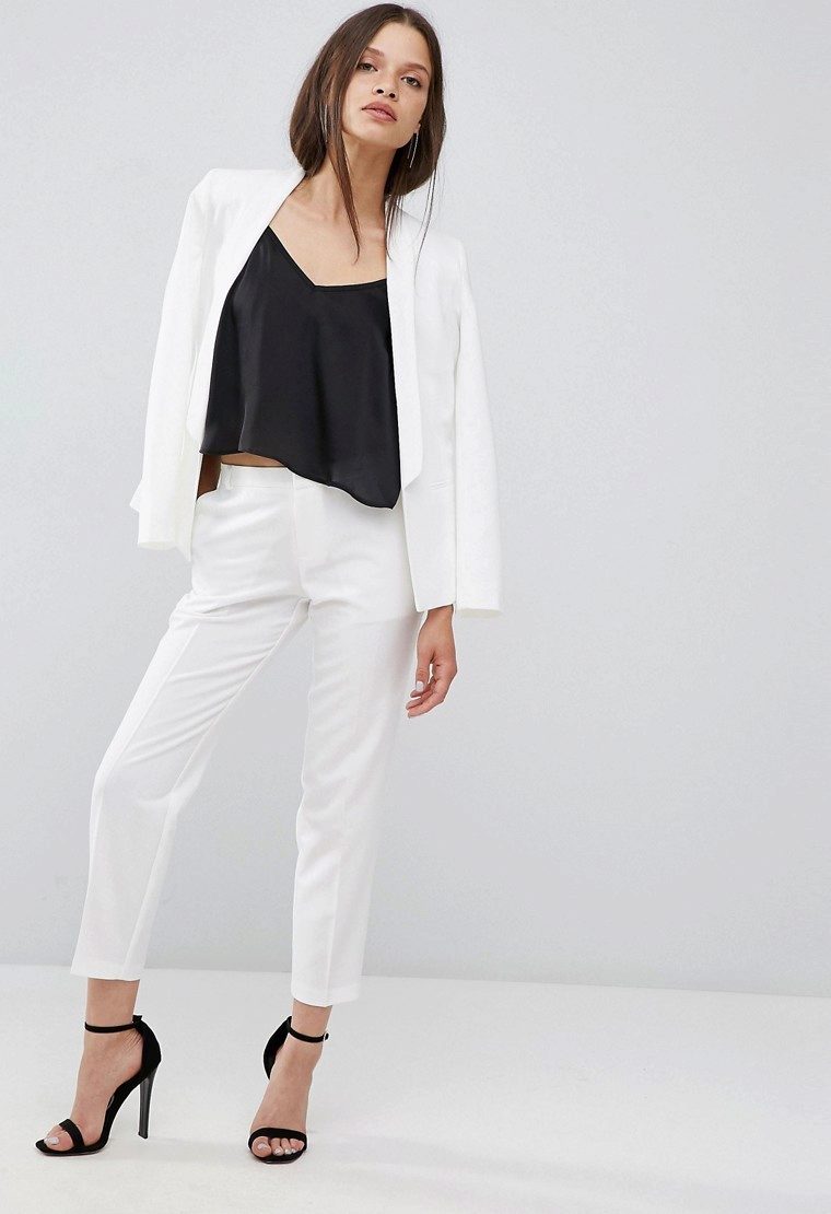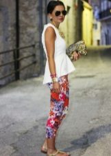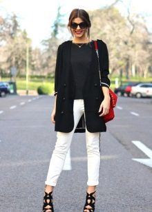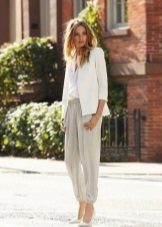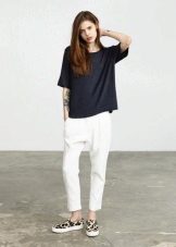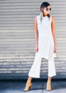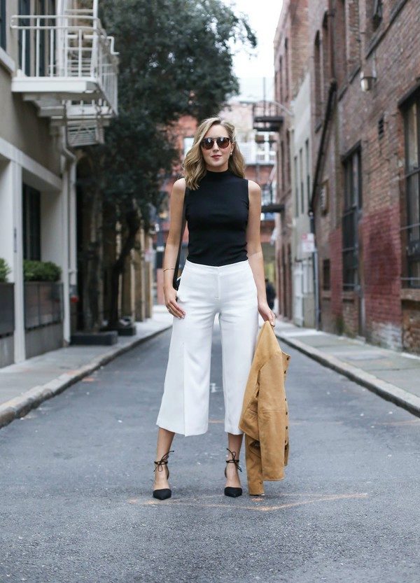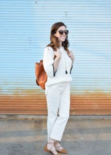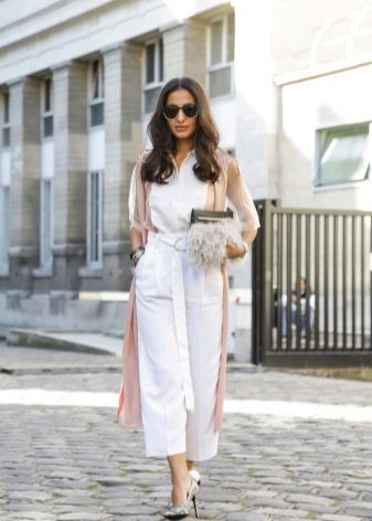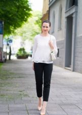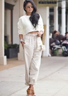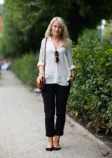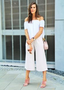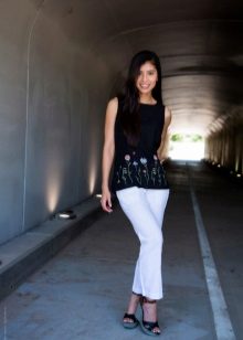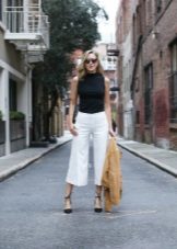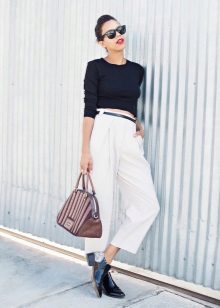 White cropped trousers are easy to combine with clothes of any color. The most successful combination is white with black. Such a monochrome set will make your image bright and memorable.