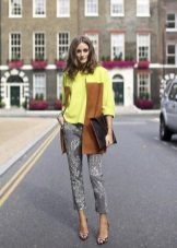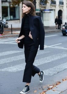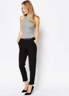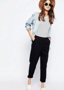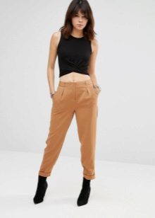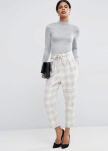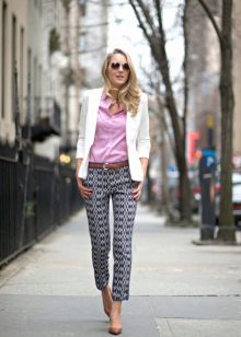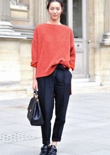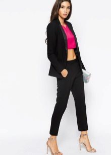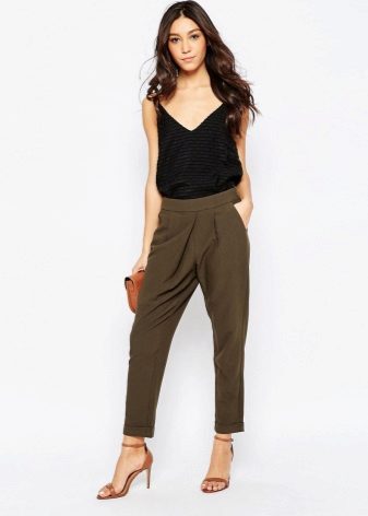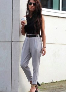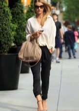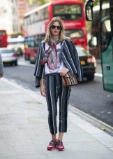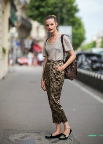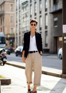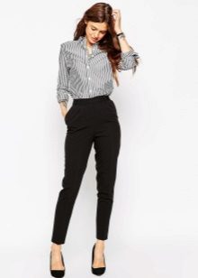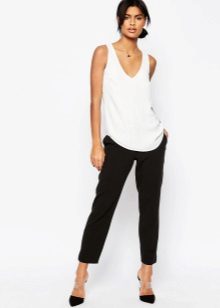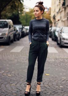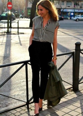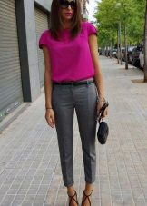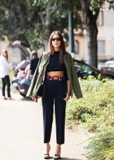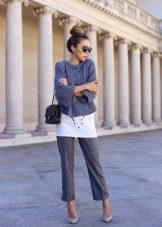 The model is very versatile, it is suitable not only for business, but also everyday or holiday images. In any case, a loose or even voluminous top is preferable for shortened, memorized trousers, which will allow you to maintain the proportions correctly.