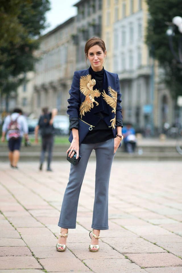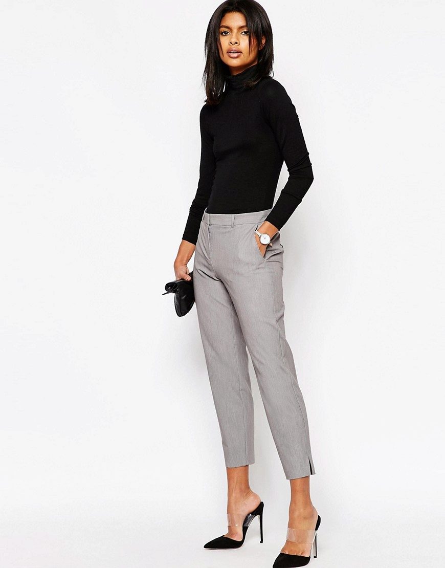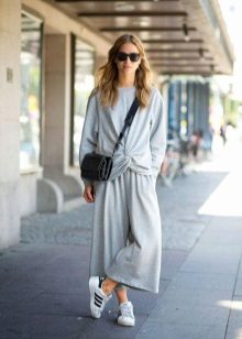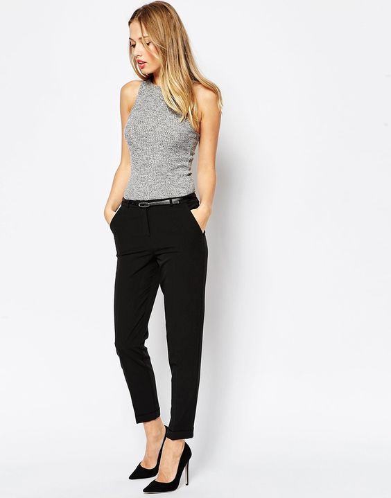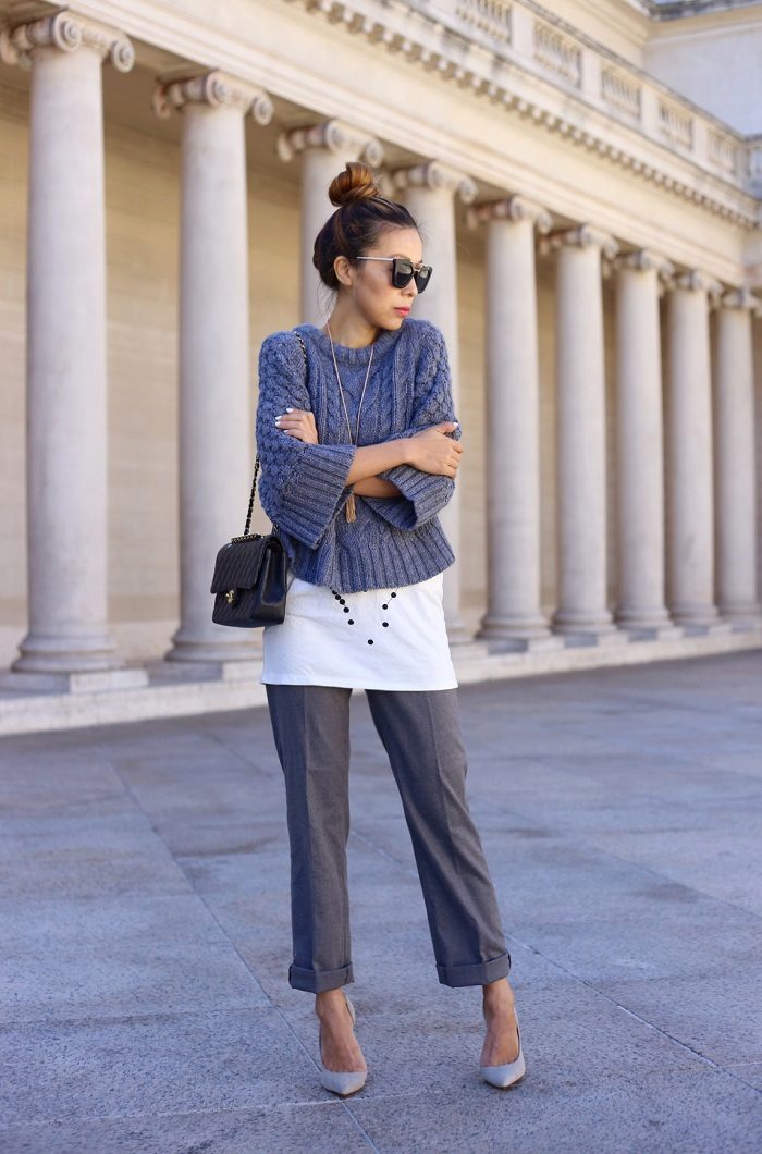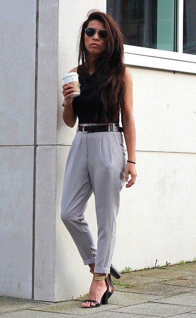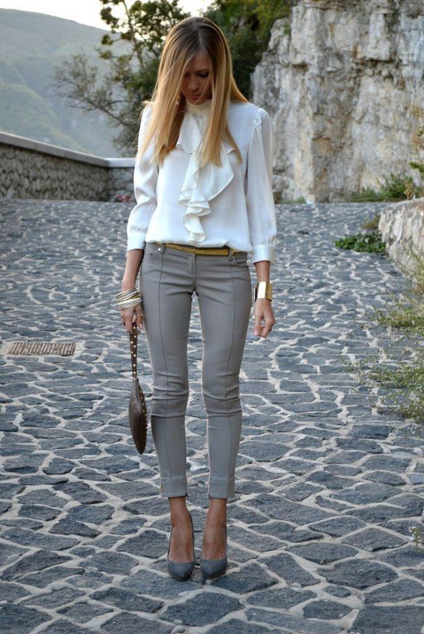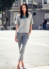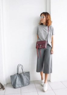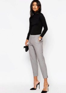 Gray cropped trousers are versatile, they will never go out of fashion. If you make a basic wardrobe, you can safely include them in the list. Thanks to the restraint and elegance, they fit perfectly into the office dress code.