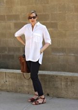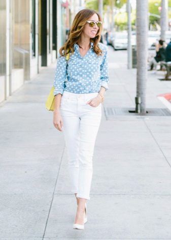 - A win-win for any occasion is a white shirt. Over it you can throw a blazer, leather jacket or denim jacket. The latter will make the image especially brutal and stylish.