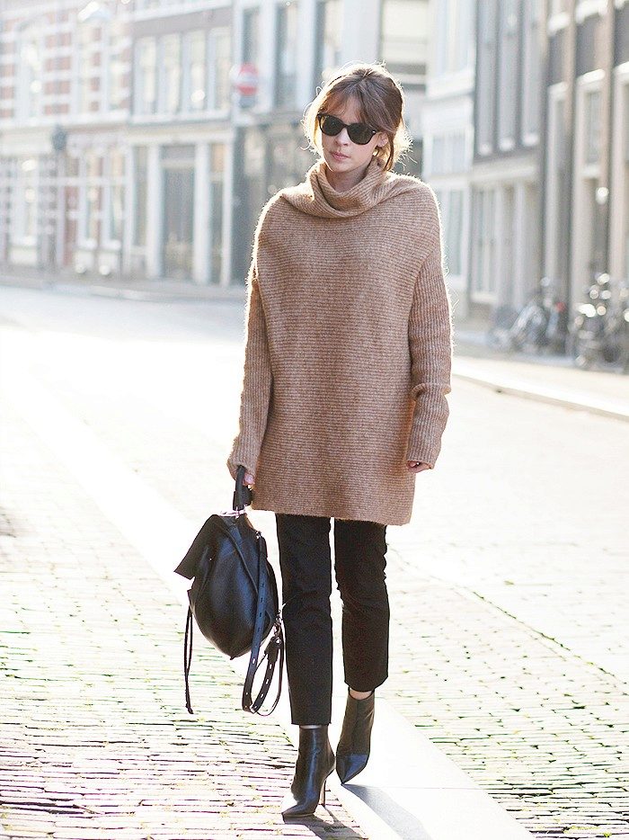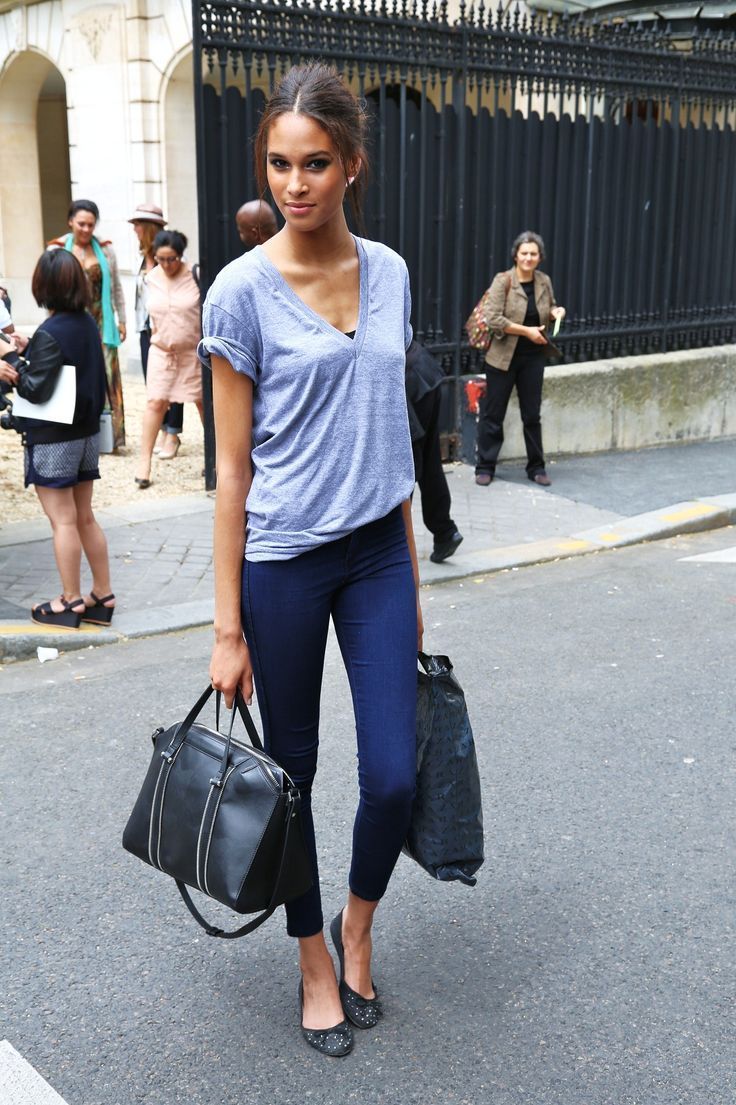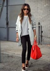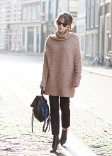 - Avoid long tops, discard tunics and elongated sweaters that "cut" the figure in half. The ideal option is short T-shirts, jumpers, jackets and cardigans, or models up to mid-thigh. In the cold season, prefer a short leather jacket or a cropped coat.